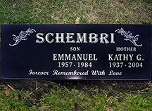 Flat Markers come in a variety of sizes, shapes and colours. Thickness is usually 4 inches. These are sunk into the ground or secured onto a base or foundation. Depending on colour, a variety of designs and etchings can be applied. Our skilled technicians and craftmen can create a lasting monument tailored to your specific needs.