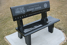 Our Bench Memorials come in a variety of shapes, sizes and colours. They can be made out of wood, stone, granite or any combination of materials. Depending on their composition, a variety of designs and etchings can be applied to them. Not only suited for cemetarys, benches can be installed and used in a variety of locations. Whether in a cemetary or park as a resting monument, or a backyard as a landscape marker, benches are both can be both eye catching and also functional.