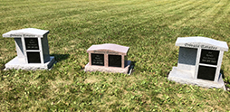 Pillow markers sit on top of the ground or foundation and come in a variety of sizes, shapes and colours.Slope heights vary but go from 4" to 6" and 6" to 8" being most common. Depending on colour, a variety of designs and etchings can be applied. Our skilled technicians and craftmen can create lasting monument befitting of your loved ones.