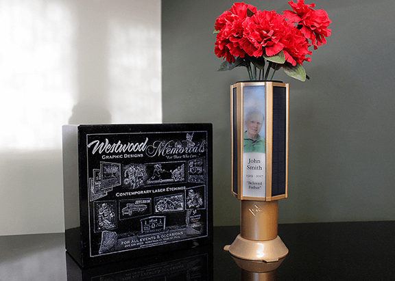 Our vases and Urns come in a variety of sizes and shapes. Made from die-cast aluminum or granite. Depending on the colour, a variety of designs can be carved or etched onto them for further customization.